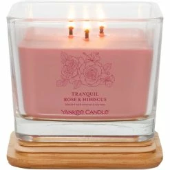 Cheap ???? Yankee Candle Tranquil Rose And Hibiscus Medium Well Living 3 Wick Square Candle ????