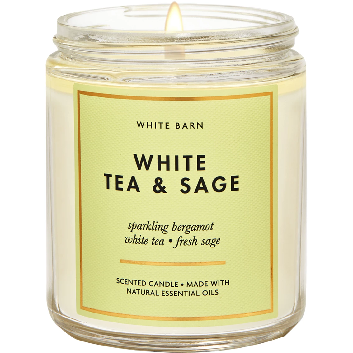 The scent of sparkling bergamot, white tea and fresh sage in the room-filling fragrance of Bath & Body Works Single Wick Candle with essential oils. Get this candle and fill any room in your home with delightful fragrance. Model: 88565.
