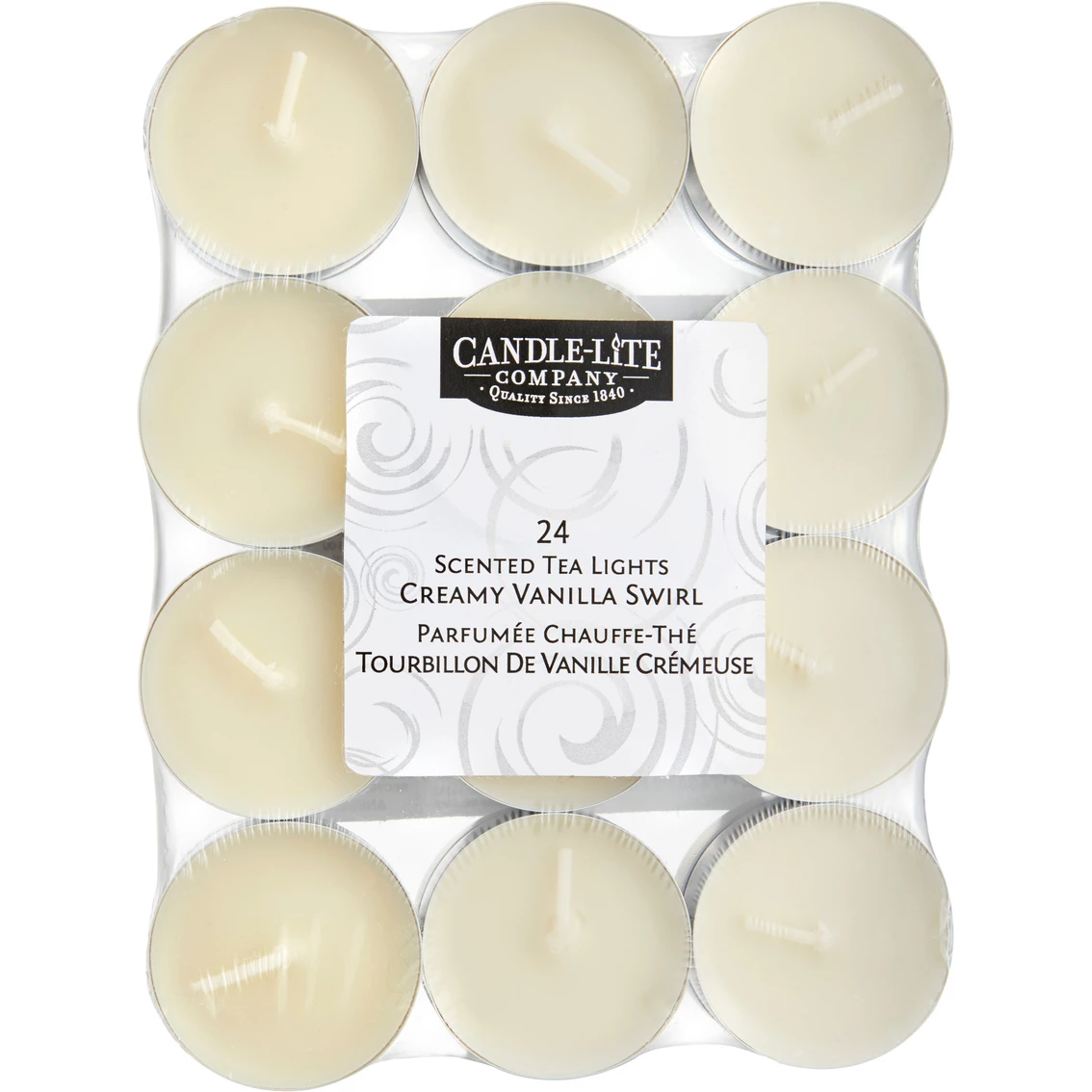 Upgrade your tealights with these premium quality scented tealight candles infused with the irresistible Creamy Vanilla Swirl from Candle-lite. The best part of every cake is the frosting! Indulge in the rich creamy aroma of vanilla frosting, featuring luscious swirls of sweet cream, confectionary sugar, vanilla bean and buttery nuances. Candle-lite’s tealights fully liquefy to let you enjoy better fragrance and soft flickering light. The fragrance notes are top notes of butter cream frosting, confectionary sugar. Middle notes of vanilla cream, iced frosting accord and bottom notes of raw sugar, vanilla bean and sweet cream. Burn time is 4-6 hours. Model: 4533570.