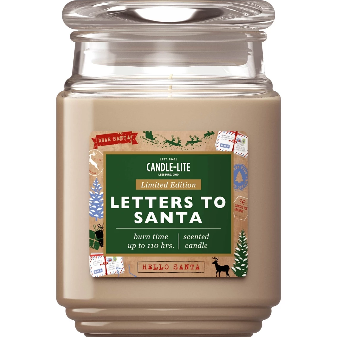 The Candle-Lite EDES Holiday Collection 18 oz. Letters to Santa Jar Candle burns as Santa snacks on his favorite fresh-baked treat, milk and cookies and reads letters from children all over the world. Candle features gourmand, fresh-baked notes of gooey sugar cookies, raw sugar cane, cashew milk, coconut cream, honey brittle, whipped marshmallow and pastry accord twirl through the air of Santa’s workshop.