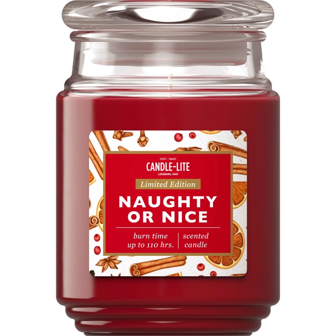 The Candle-Lite EDES Holiday Collection 18 oz. Naughty or Nice Jar Candle is a classic, traditional, cinnamon spice fragrance and a holiday season staple. Features spiced notes of cinnamon stick, nutmeg, cinnamon bark, bays leaves, clove cinger, tonka bean, woody essence and musk.