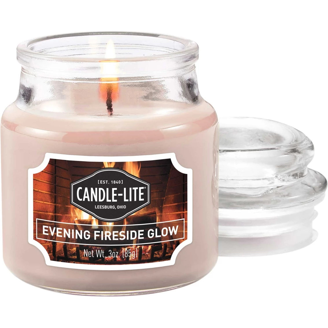 This Candle-lite 3-oz. jar features the scent of Evening Fireside Glow. Bask in the warm, woody glow of crisp, red cedar, earthy patchouli and white sandalwood with golden amber, fresh balsam forest, French vanilla and a whisper of spicy cinnamon. The fragrance creates an inviting and fragrant home atmosphere in every room. Model: 4345251.