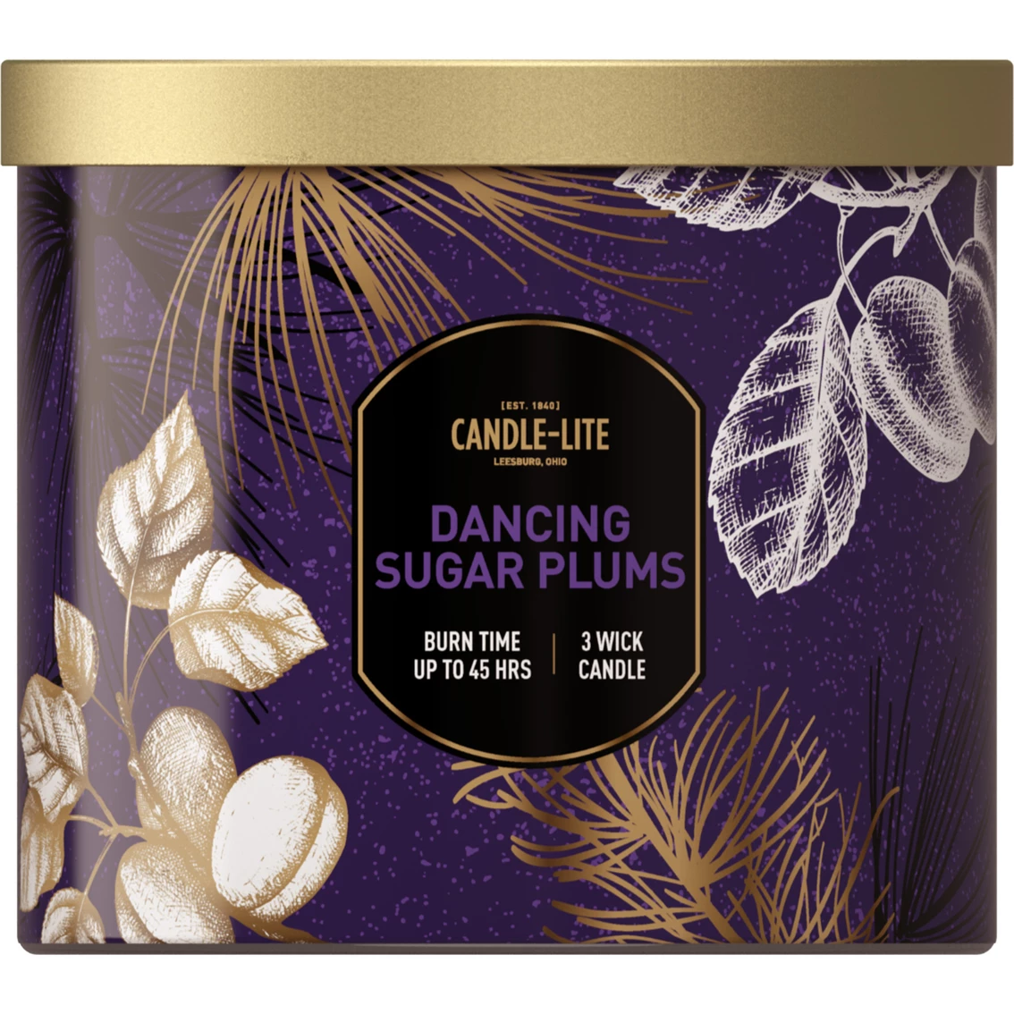 Create an inviting and vibrant home atmosphere. Relax with this Candle-Lite Fall Collection 3 Wick 14 oz. Dancing Sugar Plums Candle. Visions of sugar plums will dance through your head and your heart with festive, fresh, heartwarming notes of fir balsam tree, holly leaf, golden pear, vanilla bean, cedarwood, sweet amber, praline and white musk. Model: 45411321.