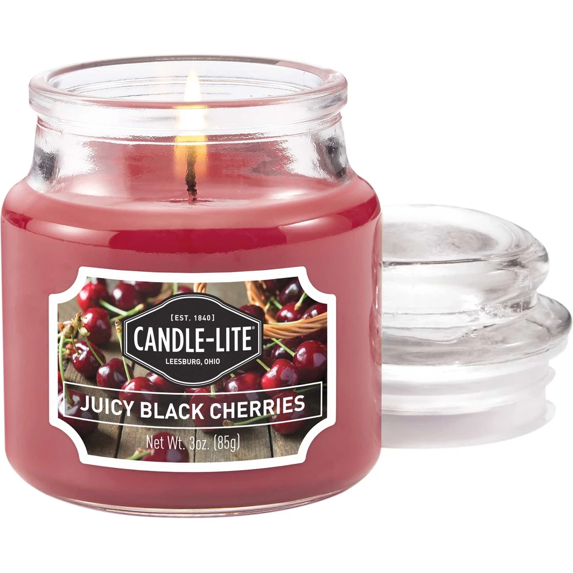 This Candle-lite 3-oz. jar features the scent of Juicy Black Cherries. A delicious aroma of succulent, ripe black cherries is lifted by nuances of pear, berries, fresh greens and sweet vanilla. The fragrance creates an inviting and fragrant home atmosphere in every room. Model: 4345565.