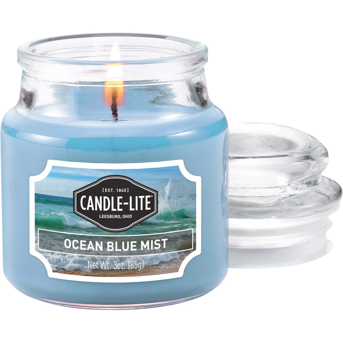 This Candle-lite 3-oz. jar features the scent of Ocean Blue Mist. Escape to windswept shores and smell the salty beach grass, coastal wild blossoms, sea-drenched woody nuances, fresh ozone, sheer floral blossoms and cool evening mist. The fragrance creates an inviting and fragrant home atmosphere in every room. Model: 4345128.