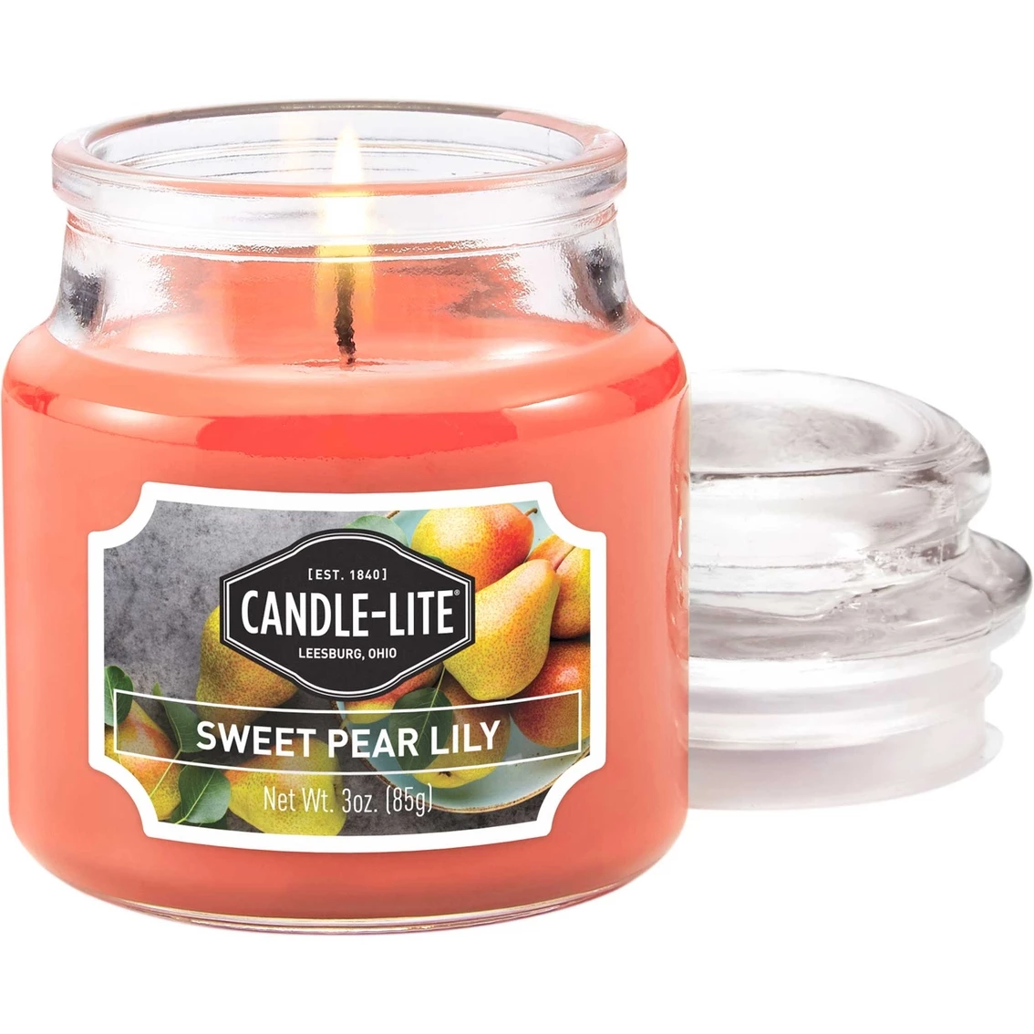 This Candle-lite 3-oz. jar features the scent of Sweet Pear Lily. Crisp, fruity pear notes harmonize with muguet and lily, rounded off with a smooth musk and creamy vanilla finish. Keep the spirit of spring alive year-round! The fragrance creates an inviting and fragrant home atmosphere in every room.