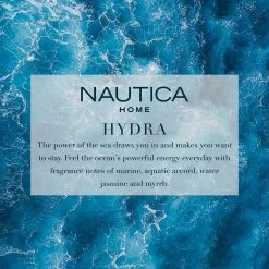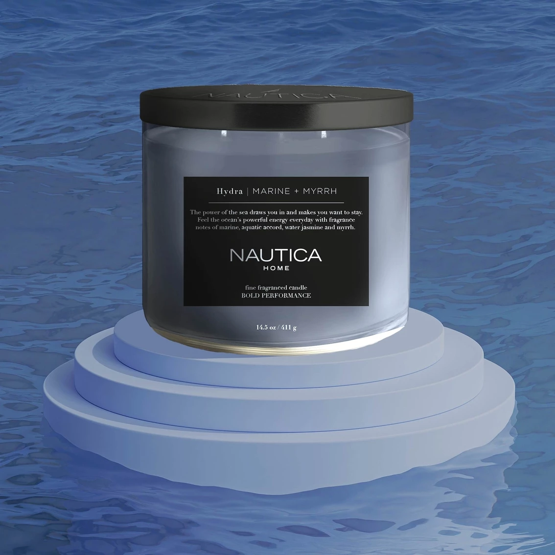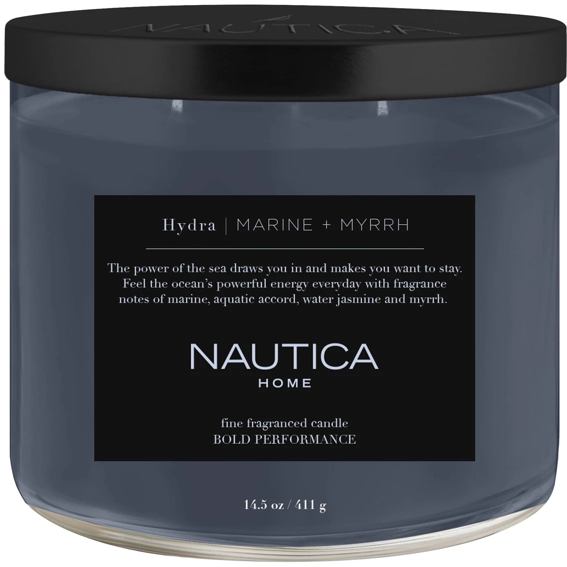 The Nautica Hydra candle is inspired by the powerful ocean and fragranced with notes of marine, myrrh, sage and sea salt. The power of the sea is what draws you in, and makes you want to stay. Feel the powerful pull every day with fragrance notes of marine and myrrh. Size: 14.5 oz.