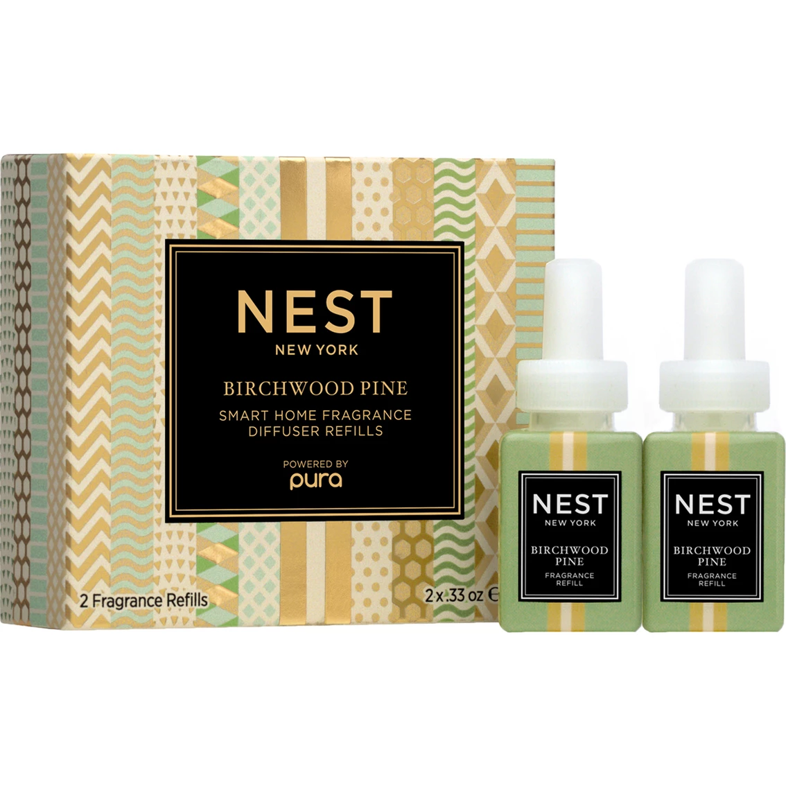 Nest New York Birchwood Pine Refill Duo for Pura Diffuser is the smart new way to scent your home. Create the aroma of a majestic winter forest with this bestselling fragrance, an iconic blend of white pine, fir balsam and birchwood over a base of rich musk and amber. This exquisitely scented Pura Smart Home Fragrance Diffuser Refill Duo lets you replenish your current fragrance or switch to a new one. Includes two vials to be used in the Pura Smart Home Fragrance Diffuser for up to 700 hours of scent.