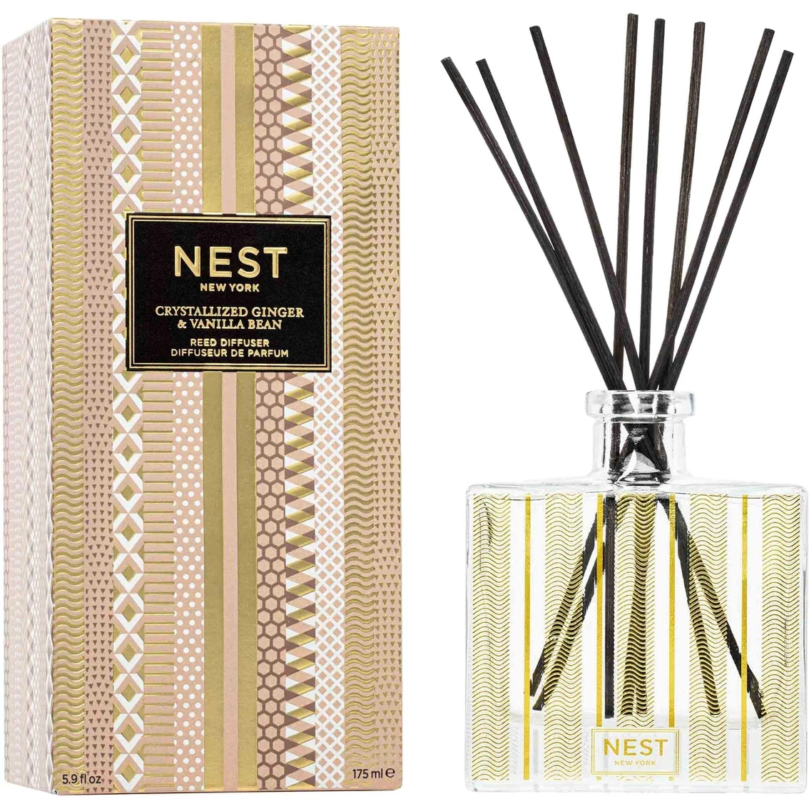Warm your home with the NEST New York Crystallized Ginger & Vanilla Bean Reed Diffuser. It has heartwarming notes of crystallized ginger, cinnamon, and vanilla bean. It creates an irresistible gourmand fragrance that captures the rich aromas reminiscent of the holiday season.