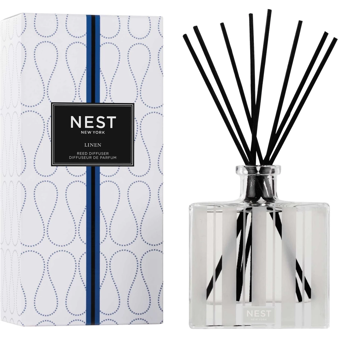 A crisp linen accord is combined with apple blossom and white orchid to create the aroma of freshly laundered linens infused with the essence of a summer breeze. Carefully crafted with the highest quality fragrance oils, Nest Fragrances Reed Diffusers are designed to continuously fill your home with lush, memorable fragrance around the clock while adding an element of style to any decor. The premium formula releases fragrance slowly and evenly into the air for approximately 90 days. Size: 5.9 oz.