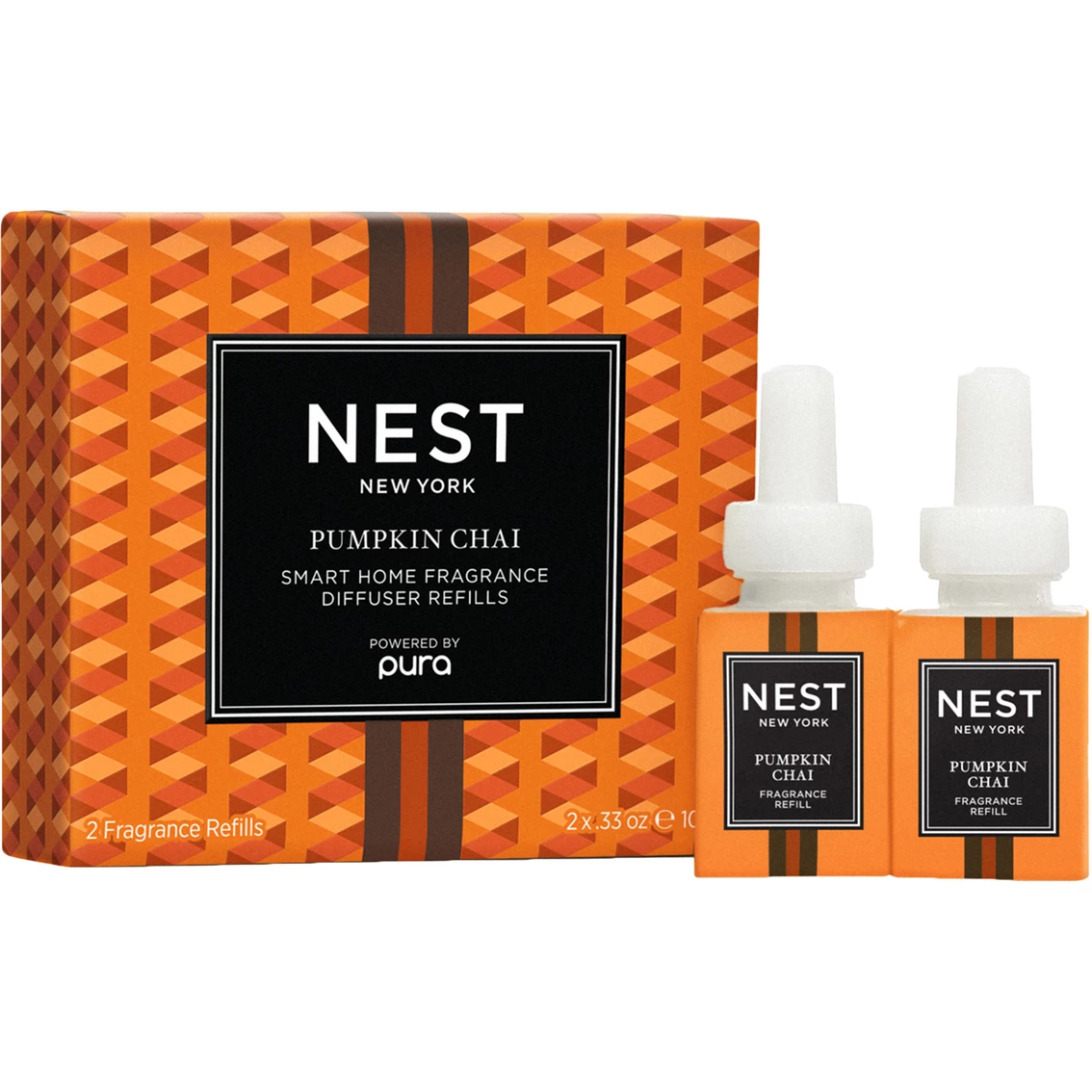 Nest New York Pumpkin Chai Refill Duo for Pura Diffuser is the smart new way to scent your home. Create a cozy autumn ambiance with this blend of wild pumpkin, spicy masala chai, cardamom, ginger, and cinnamon. This exquisitely scented Pura Smart Home Fragrance Diffuser Refill Duo lets you replenish your current fragrance or switch to a new one. Includes two vials to be used in the Pura Smart Home Fragrance Diffuser for up to 700 hours of scent.