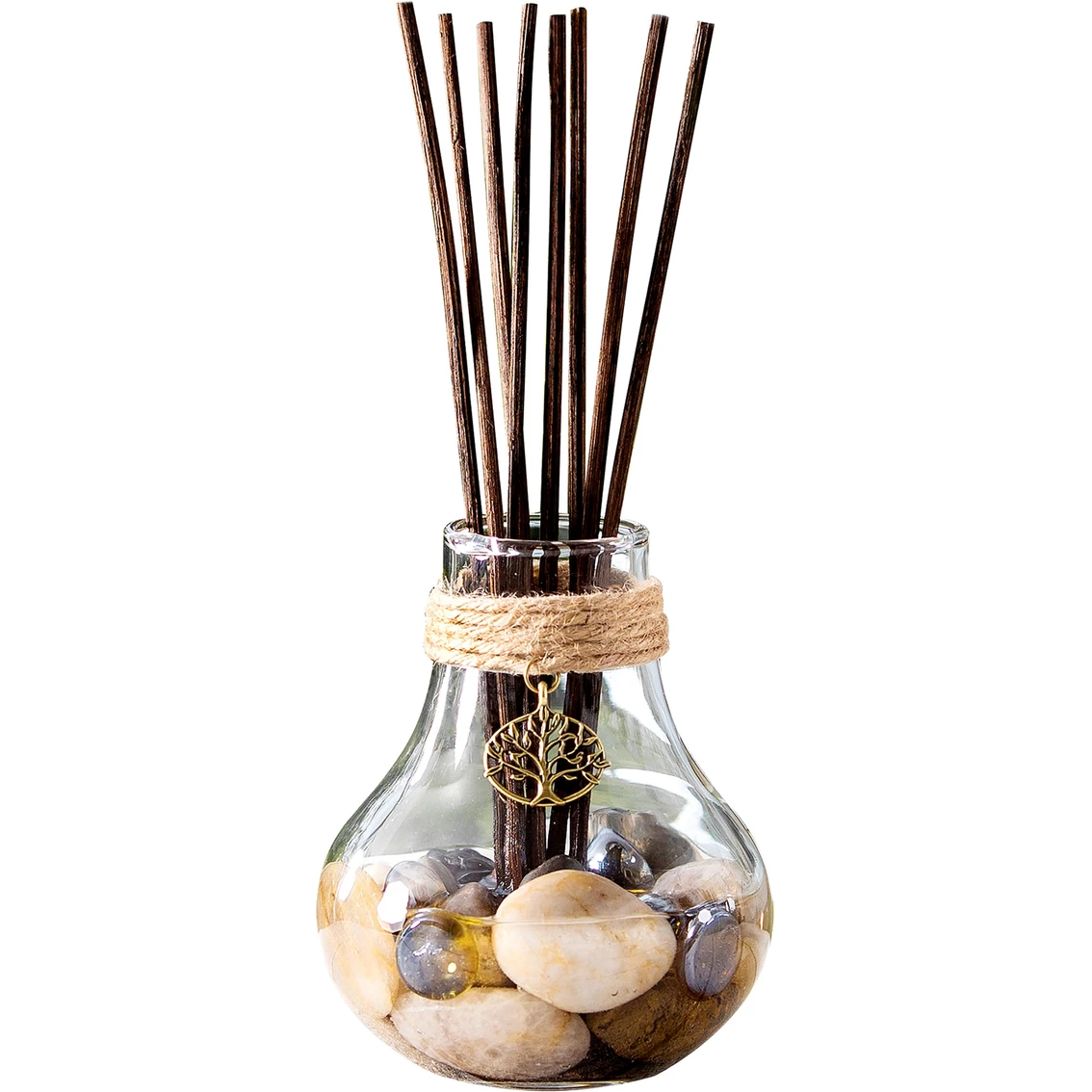 Ejnoy beauty and fragrance all in one with the Classic Reed Diffuser from San Miguel. Includes a decorative jute wrapped diffuser with an antique bronze tree charm to be filled with a collection of amber gems and natural river rocks. Includes 8 reeds and 2.7 oz. cashmere fragrance oil.