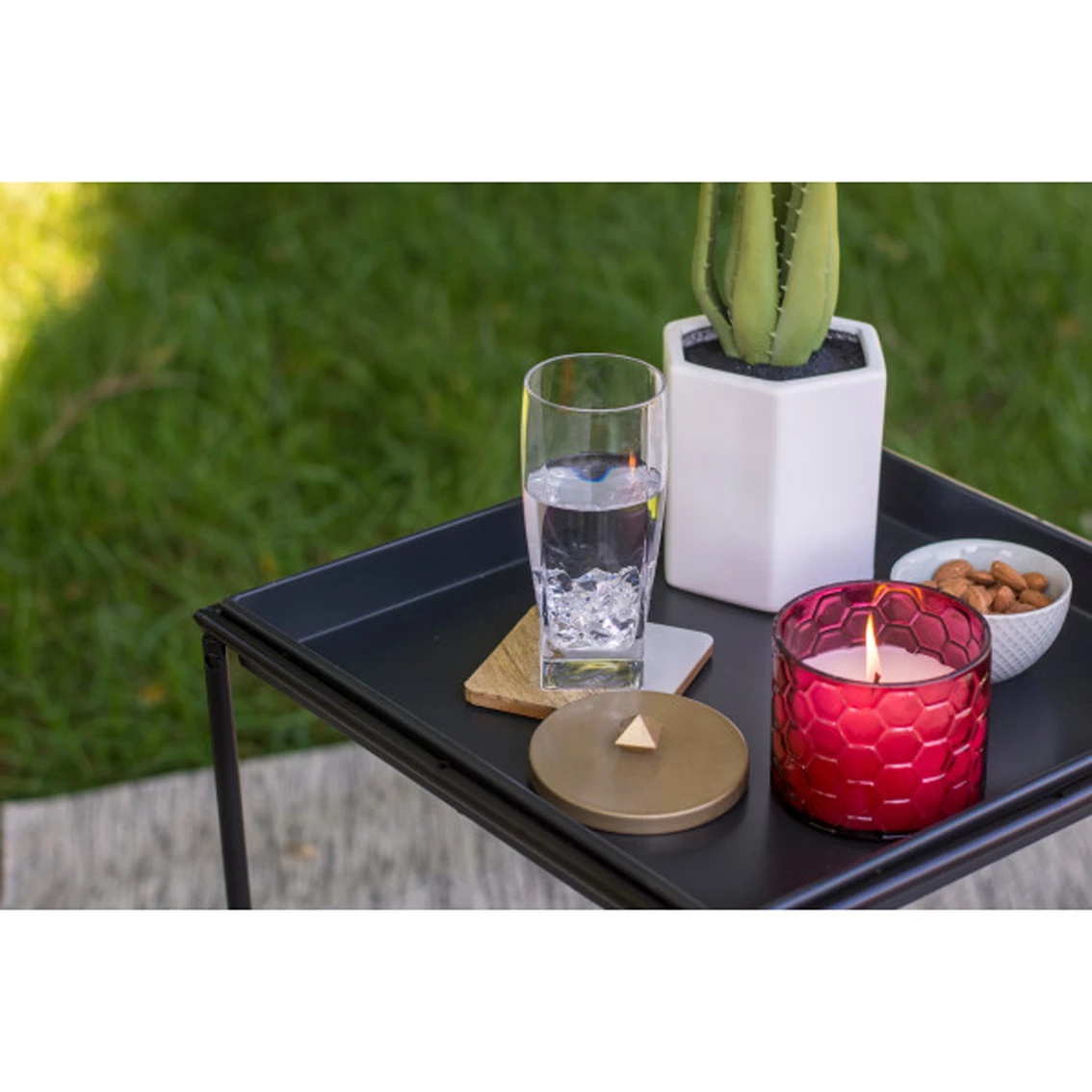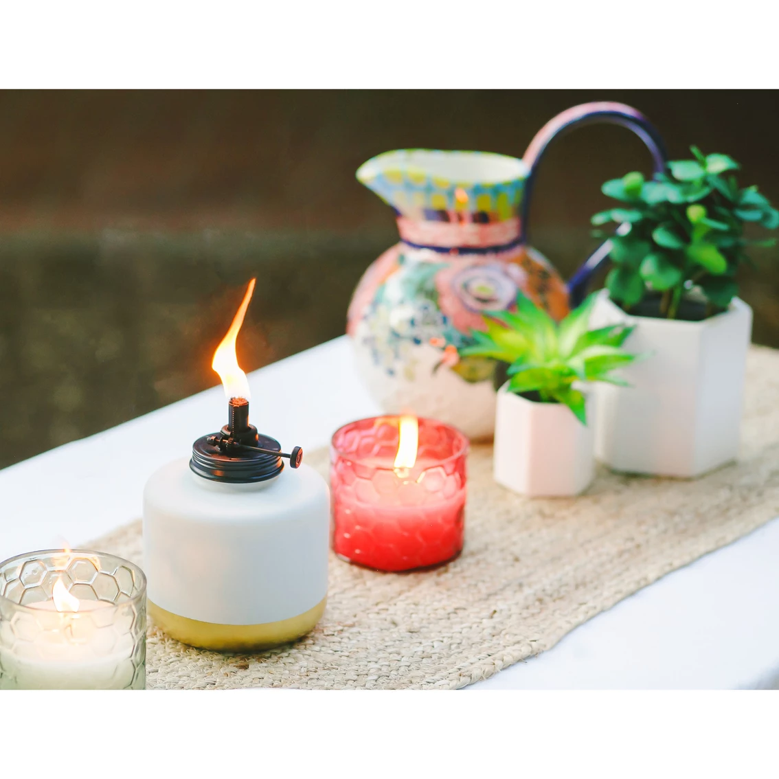 Add an element of vintage charm with this HoneyComb Glass Candle from TIKI. Sold separately, these beautiful glass citronella wax candles come in either red or teal. Use individually or group them together for a colorful centerpiece. Each 9-oz. candle burns for up to 30 hours and comes with a decorative metal snuffer. For outdoor use only. Do not leave the product unattended. Model: 1418055.