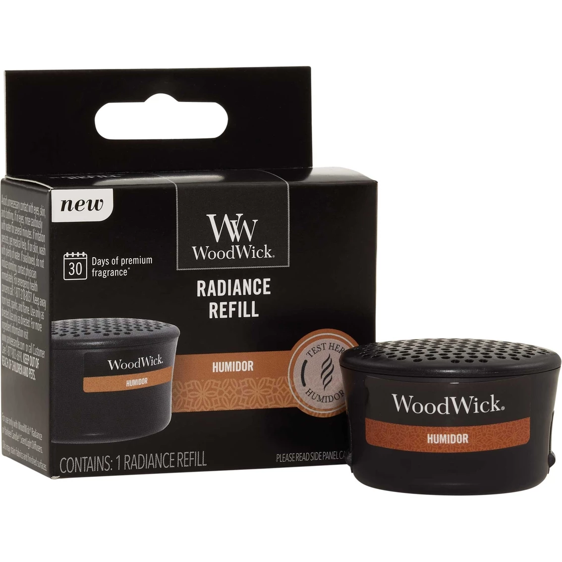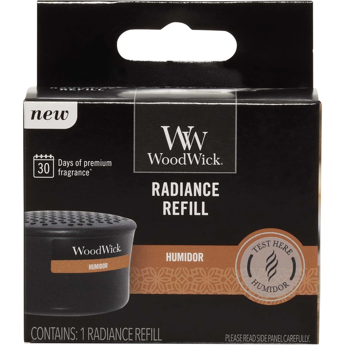 This WoodWick diffuser refill offers a fragrant medley of aged tobacco leaves, aged leather and ambered musk. The Woodwick Radiance Diffuser refills create the perfect mess-free ambiance. Model: 1702959.