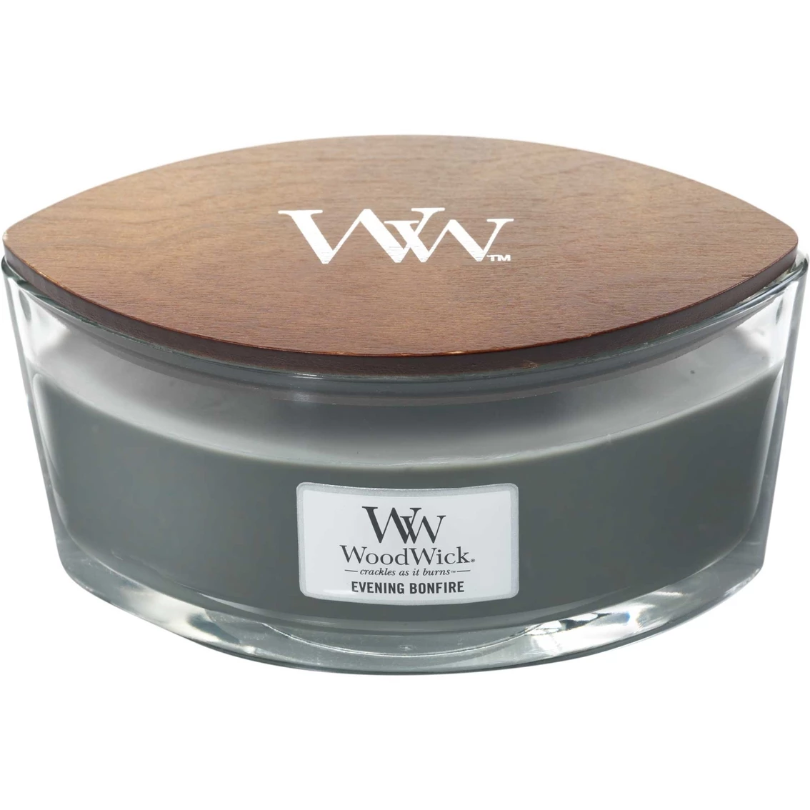 With the Woodwick Evening Bonfire Ellipse Candle experience the cozy comfort of a glowing fireplace anywhere in your home. The soothing crackle and long, dancing flame of Woodwick with Hearthwick Flame allows you to relive fond memories or create new ones in a warm, comfortable atmosphere. So enjoy more than just a candle, because home is where the Hearth is. Model: 76488.