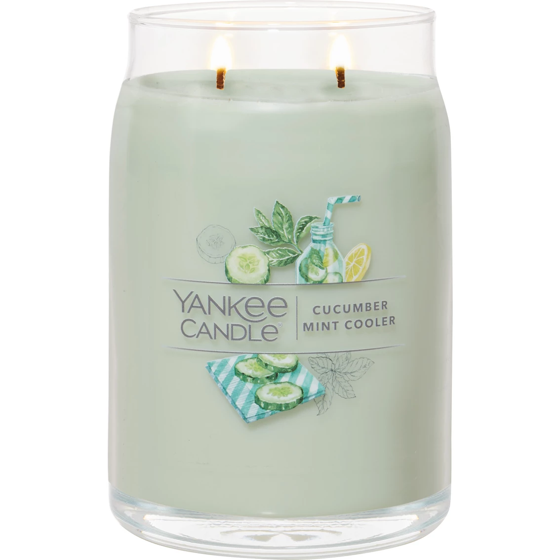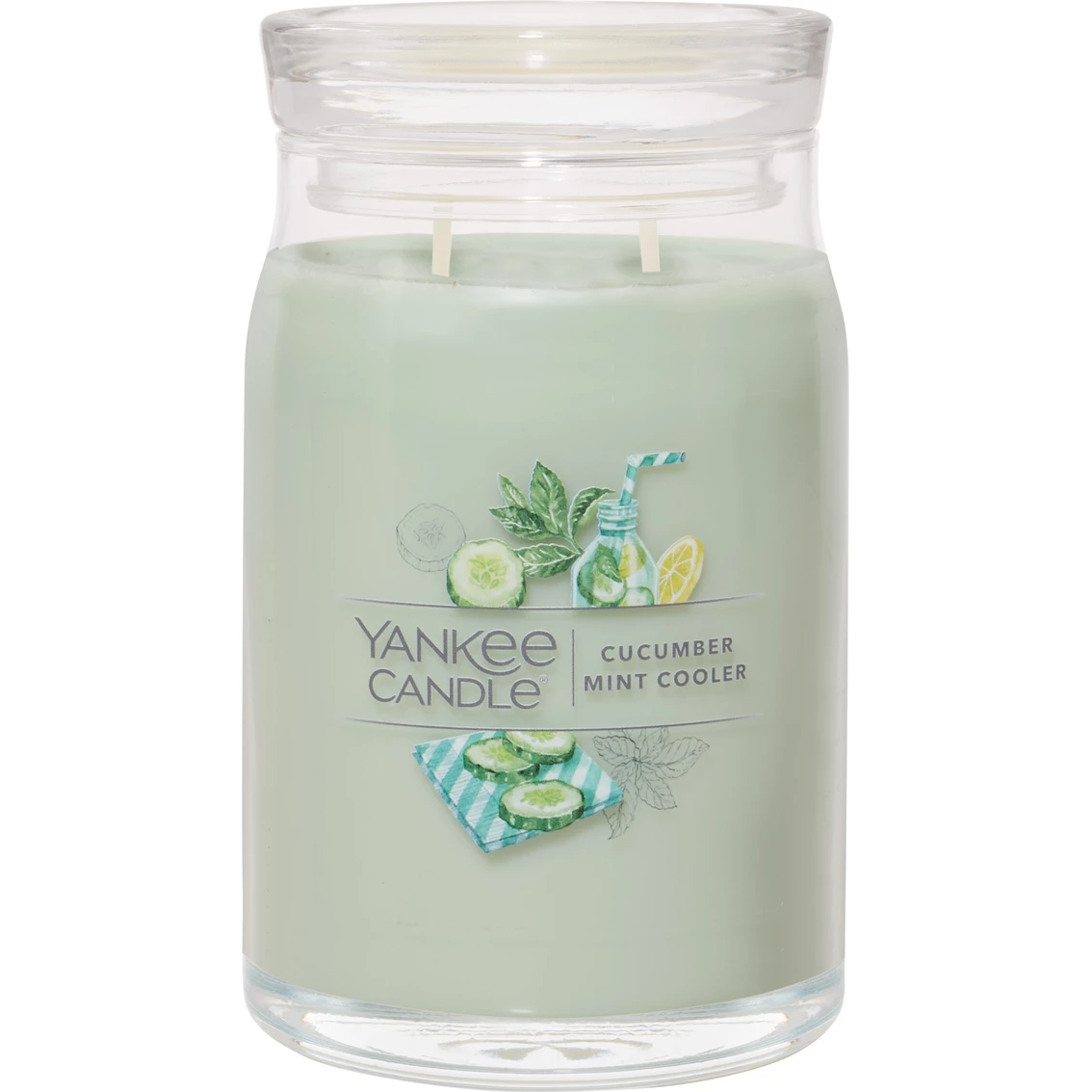 Experience the fragrance of a zesty drink with aromas of refreshing cucumber, lemon and mint with the Yankee Candle Cucumber Mint Cooler Signature Large Jar Candle.