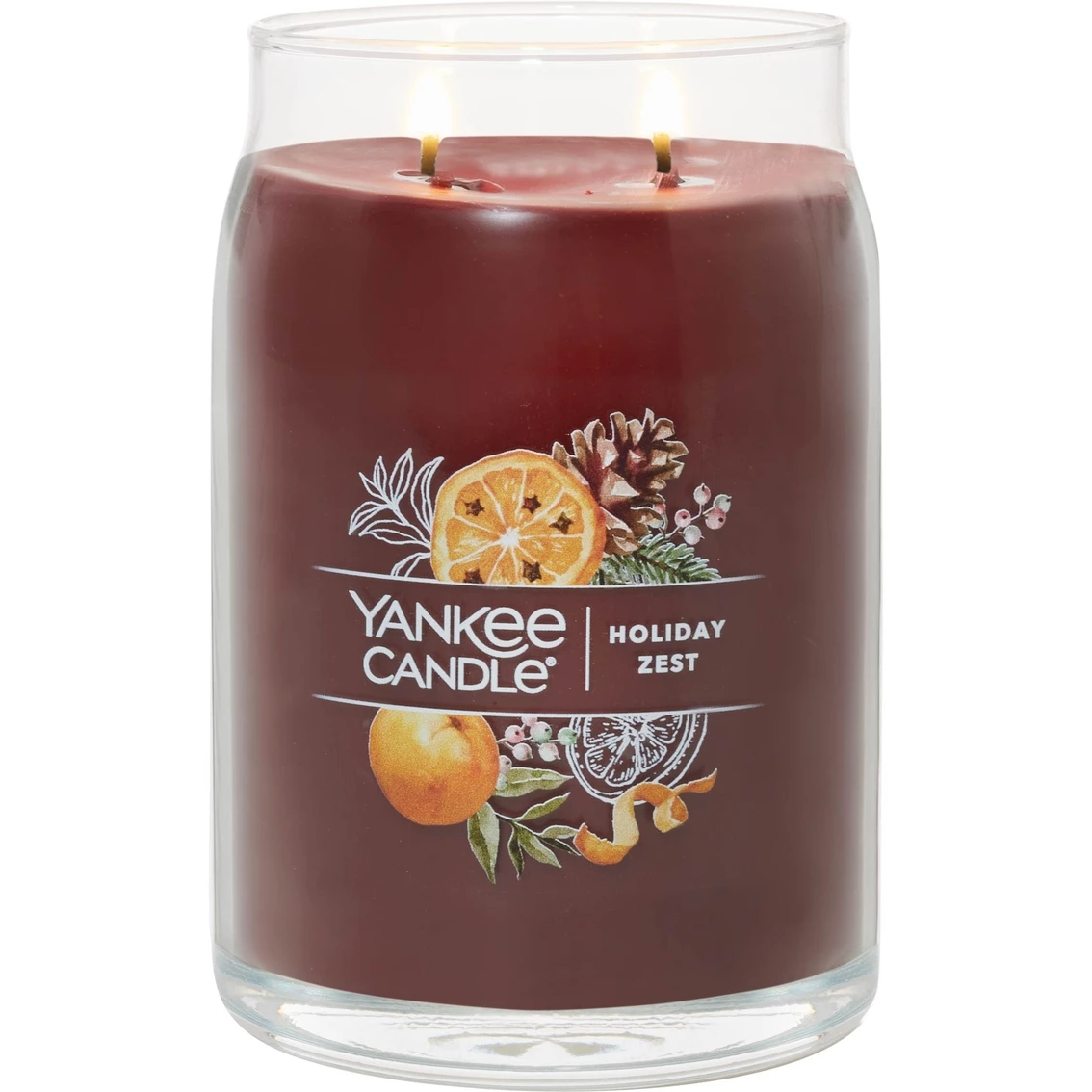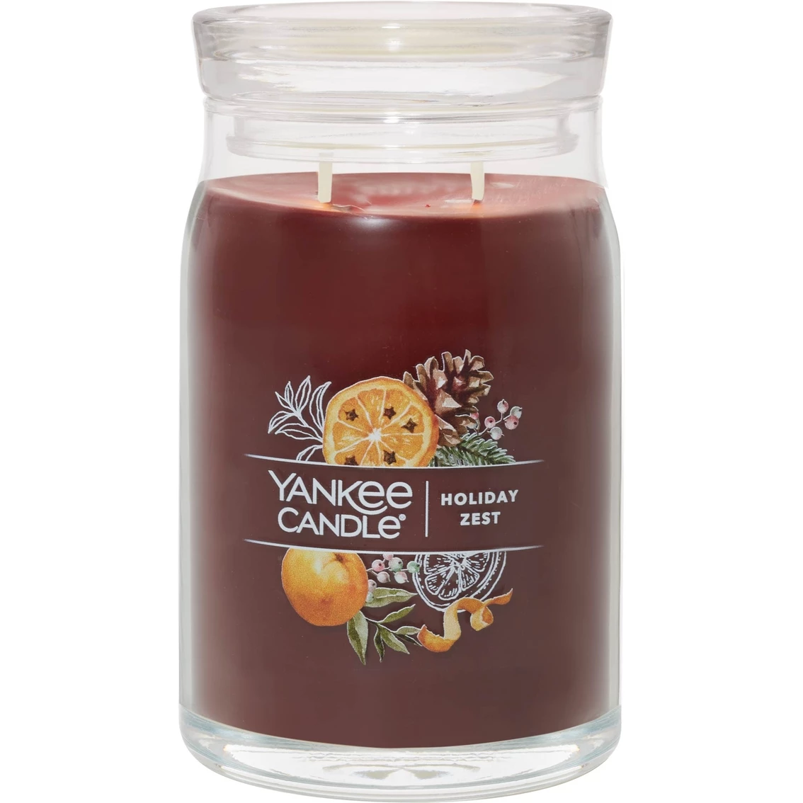 Notes of bright orange zest and candied ginger mingle with sweet vanilla and spicy clove highlight this Holiday Zest Signature Large Jar Candle from Yankee Candle. Here’s a whole new way to experience an on-trend fragrance in a modern vessel that reflects your signature style. New design, refined fragrance formula and a premium soy-wax blend make it even easier to create just the right atmosphere for your welcoming home.