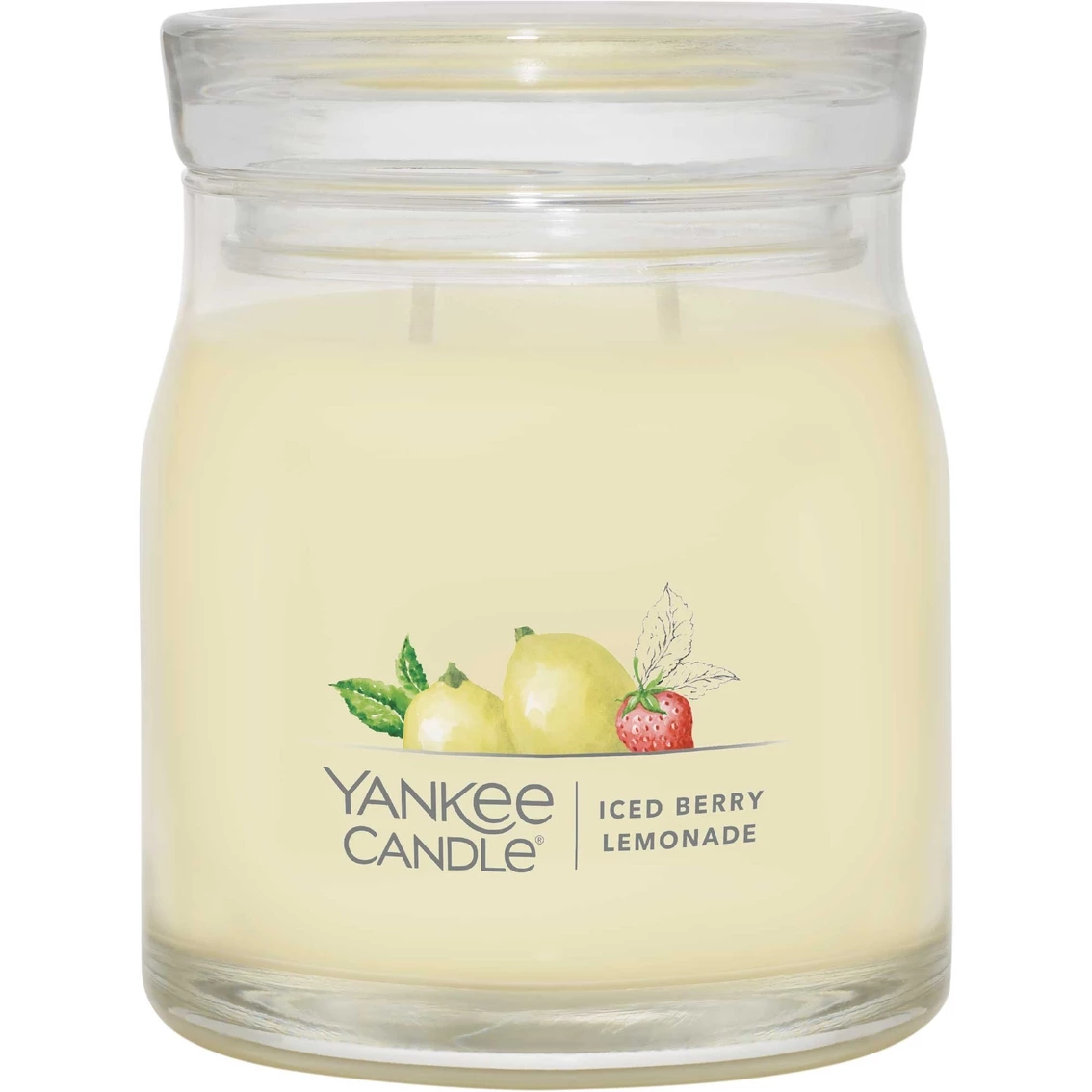 Enjoy a tall cold glass of pink lemonade on a hot summers day. Lemon sugar is mixed with ruby red grapefruit and juicy pomelo to create a refreshing drink in this Yankee Candle Iced Berry Lemonade Signature Medium Jar Candle.
