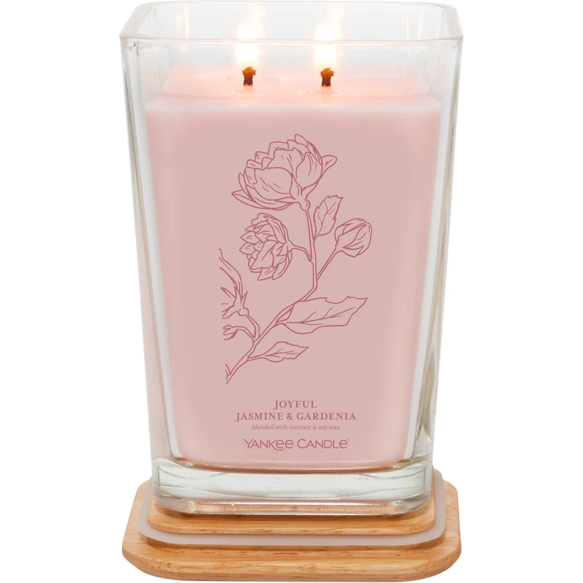 Transform the mood and energy of your home with the Yankee Candle Well Living Collection. With this Yankee Candle Large Well Living 2-Wick Square Candle, you can surround yourself in a joyful bouquet of jasmine and gardenia warmed by notes of cedar. Wellness-inspired fragrances have been carefully chosen to inspire rejuvenation and renewal. Made with essential oils and blended with coconut and soy wax, this candle can help set the tone in your home so that you and your family can take the time to stop and make the most of every moment together. The Large Square Candle includes two wicks for added ambiance. Model: 1633795.