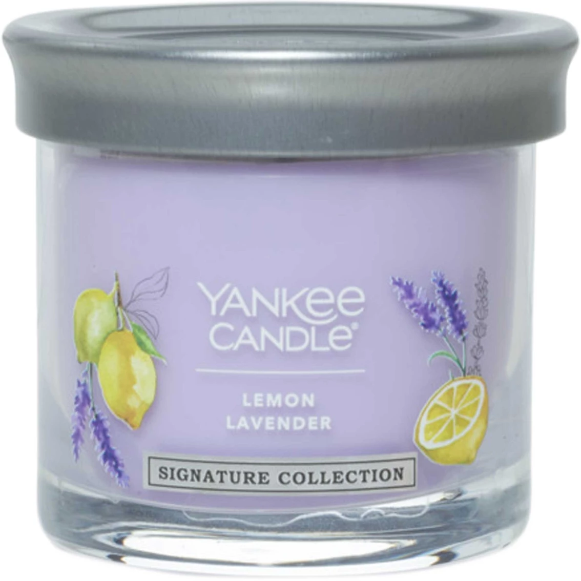 Clean and inviting . . . Lemon Lavender Signature Small Tumbler Candle from Yankee Candle delivers a powdery fresh blend of tangy lemon citrus and sweet lavender flowers.