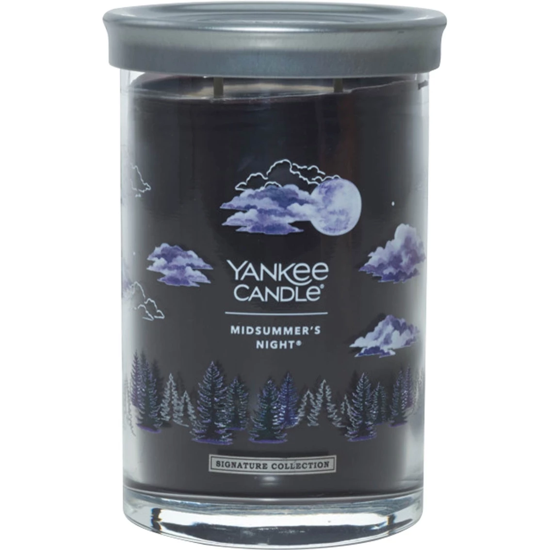 The Midsummer Night Signature Large Tumbler Candle from Yankee Candle brings you an intoxicating and masculine blend of musk, patchouli, sage and mahogany cologne.