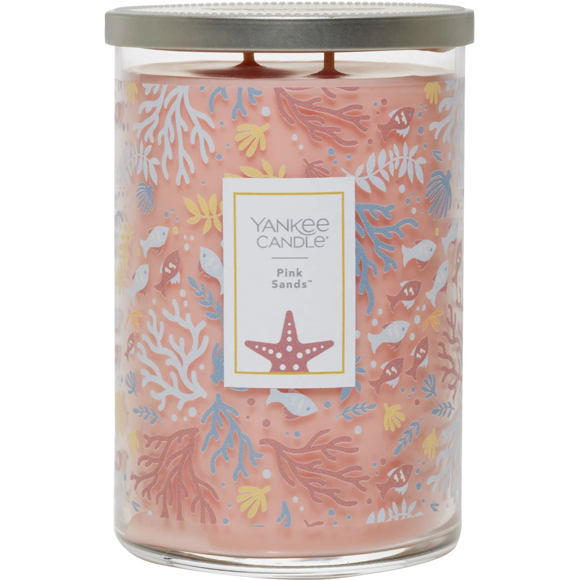 Enjoy your favorite fragrance in a modern, sleek shape. Imagine an exotic island escape in the beautiful mix of bright citrus, sweet florals and spicy vanilla with this Pink Sands Decorative 2-Wick Tumbler from Yankee Candle. Arrange several different sized Tumblers on your mantle for a candlescape, or give this stylish Tumbler Candle a starring role on a side table. Soy wax blend Tumbler has two wicks for enhanced fragrancing and extra ambiance.