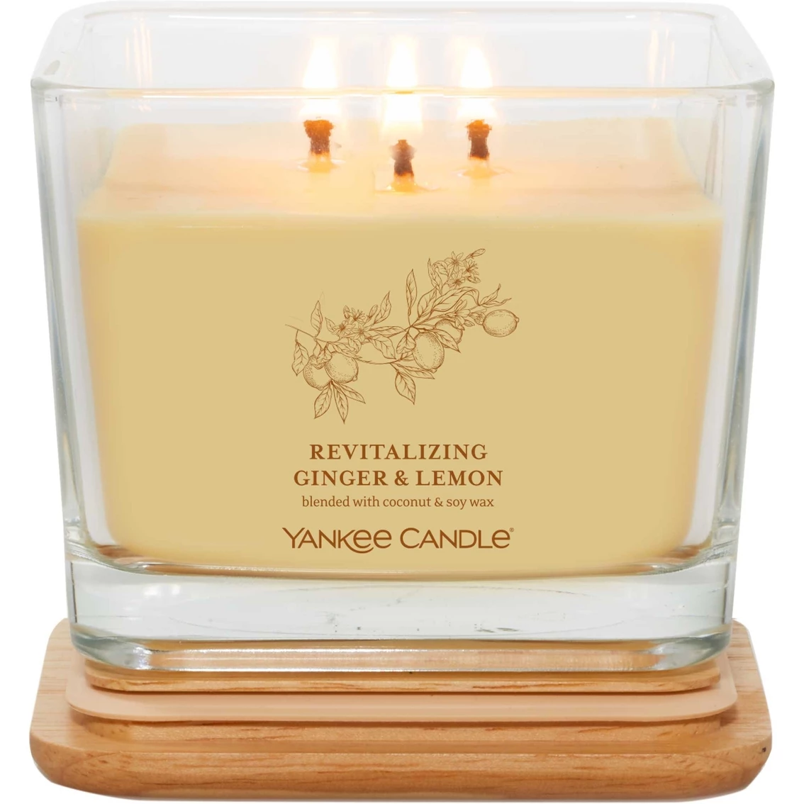 Get a lift from the warmth and energy of zesty lemon and spicy ginger with a dash of cayenne pepper Transform the mood and energy of your home with the Yankee Candle Well Living Collection. Wellness-inspired fragrances have been carefully chosen to inspire rejuvenation and renewal. Made with essential oils and blended with coconut and soy wax, these candles can help set the tone in your home so you and your family can take the time to stop and make the most of every moment together. The Medium Square Candle includes three wicks for extra ambiance.