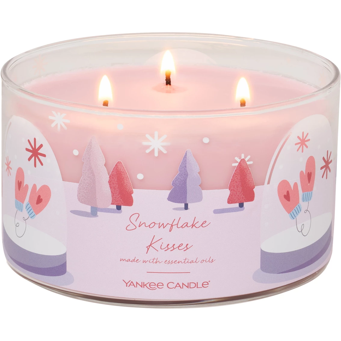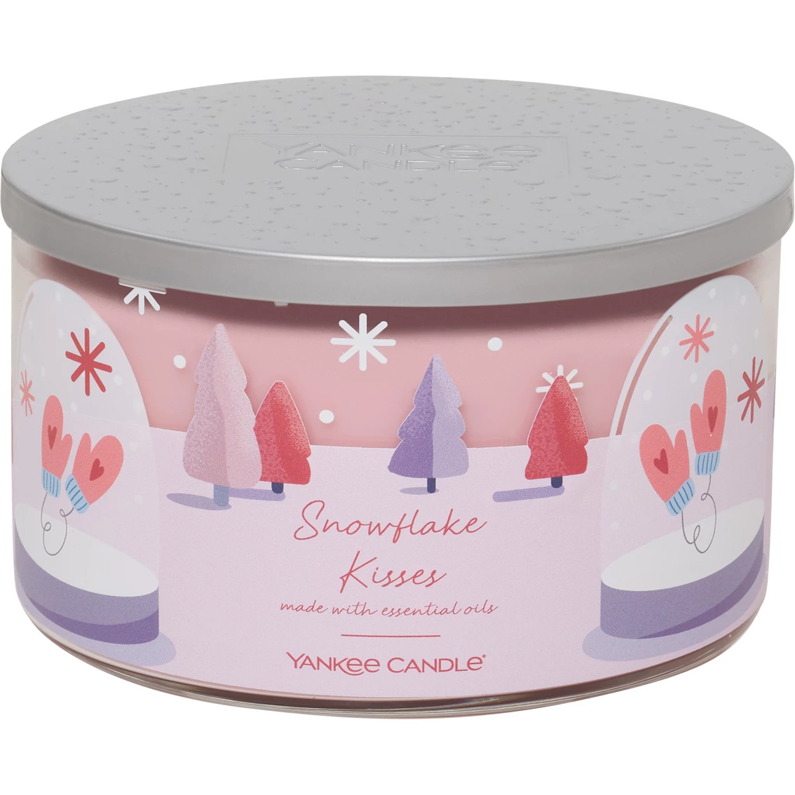 Yankee Candle’s most popular fragrances, each with a new decorative label, are available for a limited time as giftable candles with embossed metal lids. 3 wicks in the snowflake kisses candle provide a fast wax pool and a generous fragrance throw. Catch the frosty kiss of a snowflake with powdery notes of violet, rose and white musk Model: 1726897.
