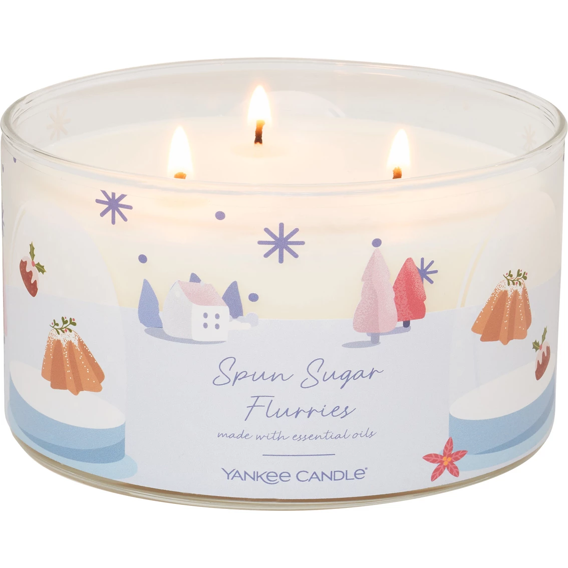 Enjoy the perfect holiday centerpiece — the Yankee Candle Spun Sugar Flurries 3-Wick Candle delivers the scent of cake layered with festive fruits and dusted with drifts of powdered and spun sugar. Yankee Candle’s most popular fragrances, each with a new decorative label, are available for a limited time as giftable candles with embossed metal lids. Three wicks provide a fast wax pool and a generous fragrance throw.