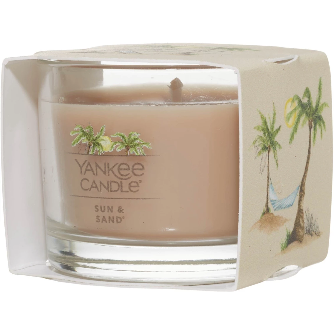 Yankee Candle Sun & Sand Filled Votive Candle, a tropical beach breeze of sweet orange flower, lemony citrus, fresh lavender and powdery musk. New! Experience your favorite Yankee Candle fragrances in a new, compact shape. In the same true-to-life fragrances as their larger candles, these tiny treats are an easy (and adorable) way to try something new. Decided on a favorite? Arrange several of the same fragrance together to add sparkle and scent to your mantel or table. Each comes in its own little package, so they’re perfect any-occasion gifts, too! Model: 1686383.